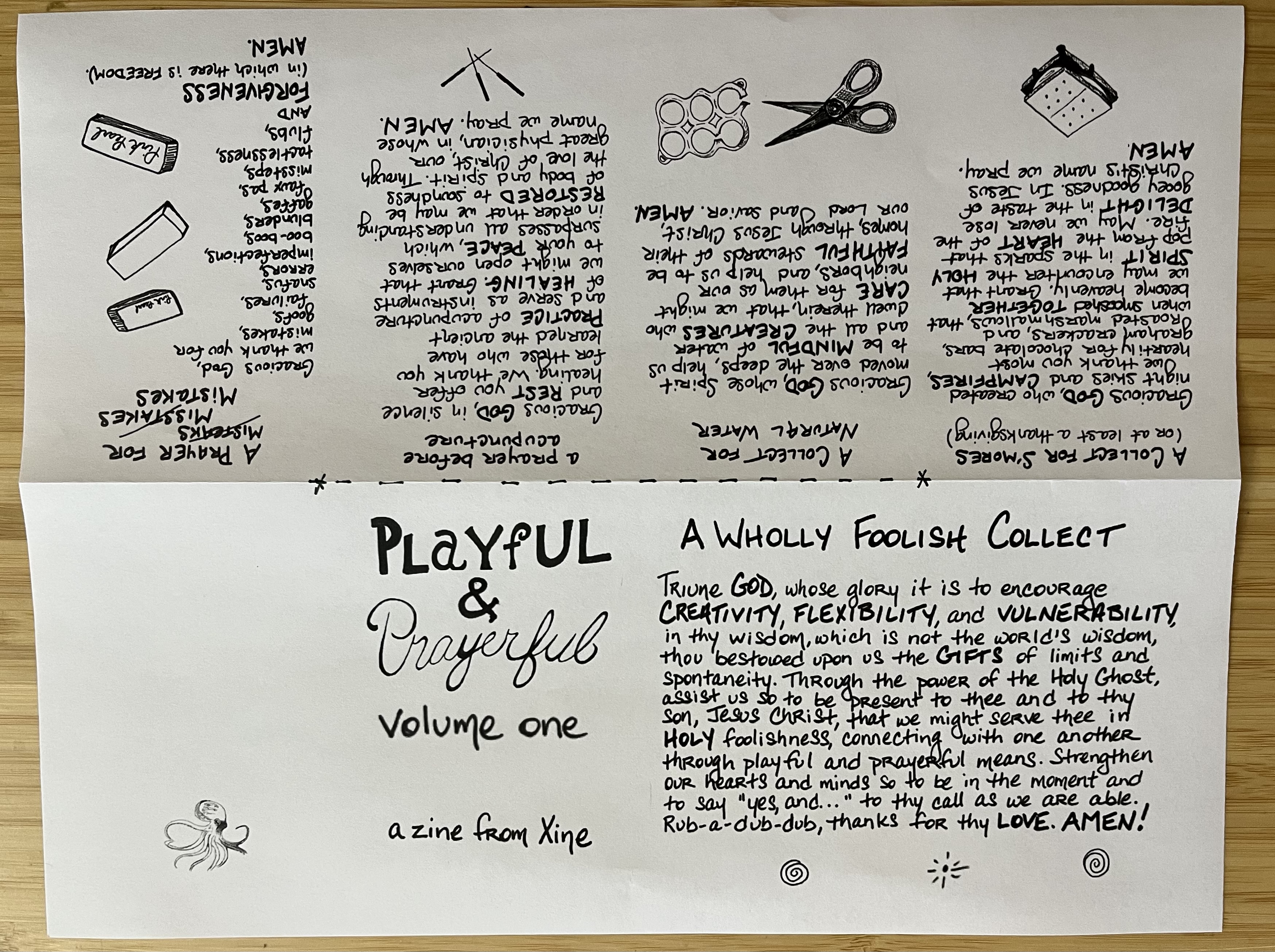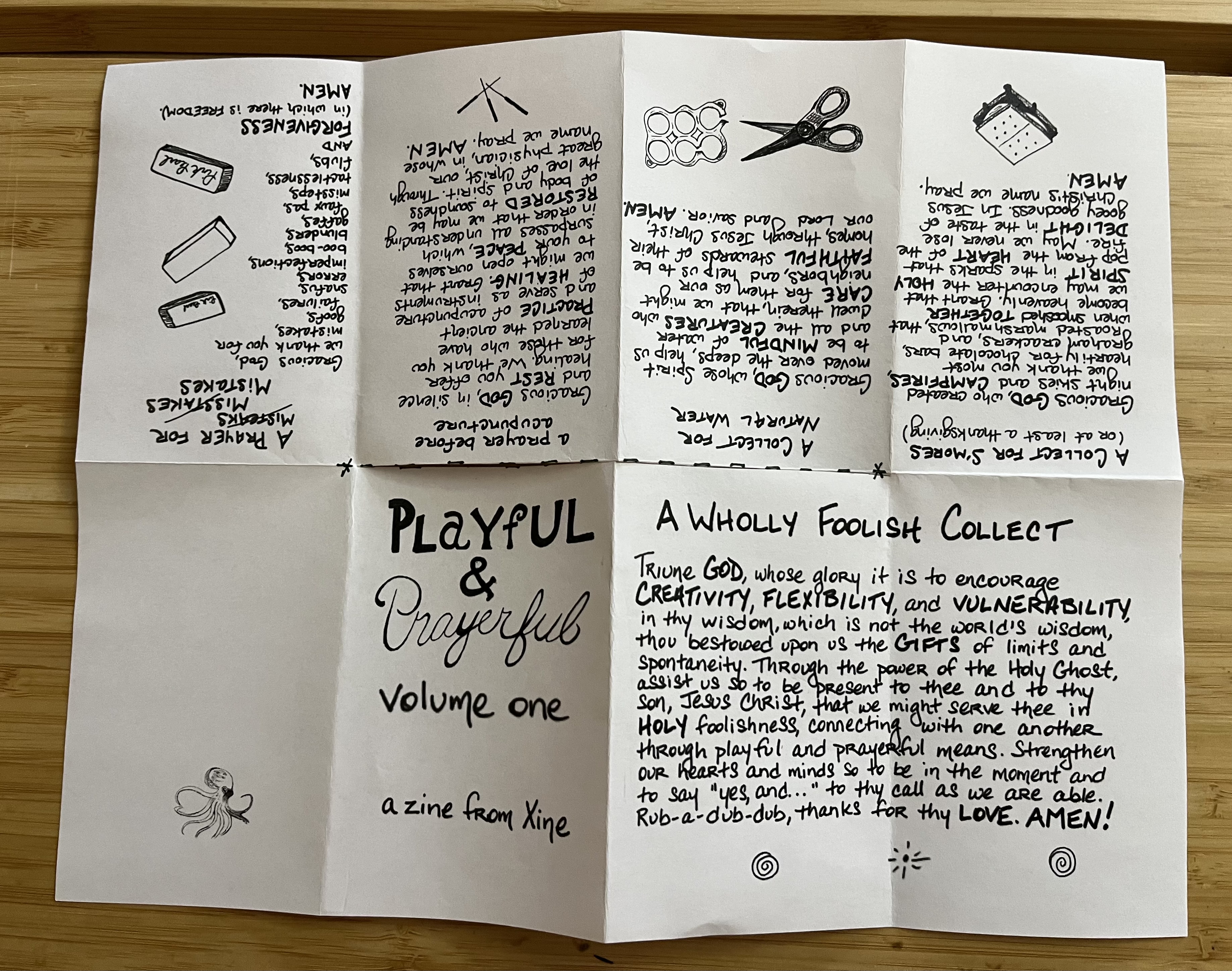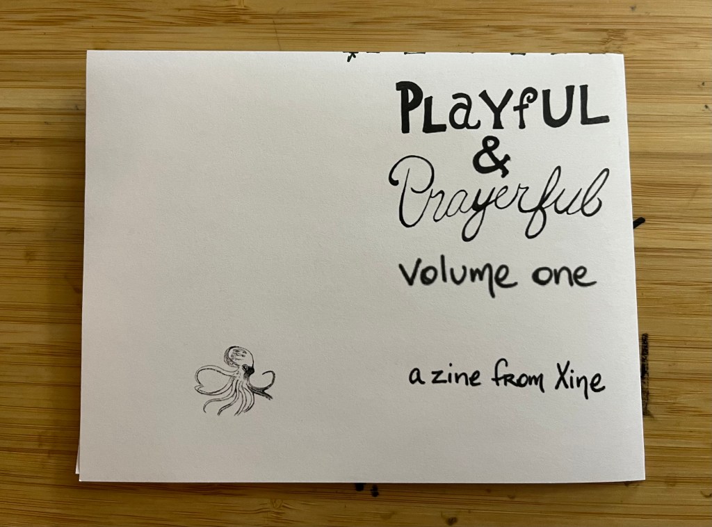 My hope is that you’ll download this zine and that the prayers might find their way into your spiritual journey, along with some playfulness. Share it with friends, family, strangers. It’s a seed, waiting for your hand to sow it.